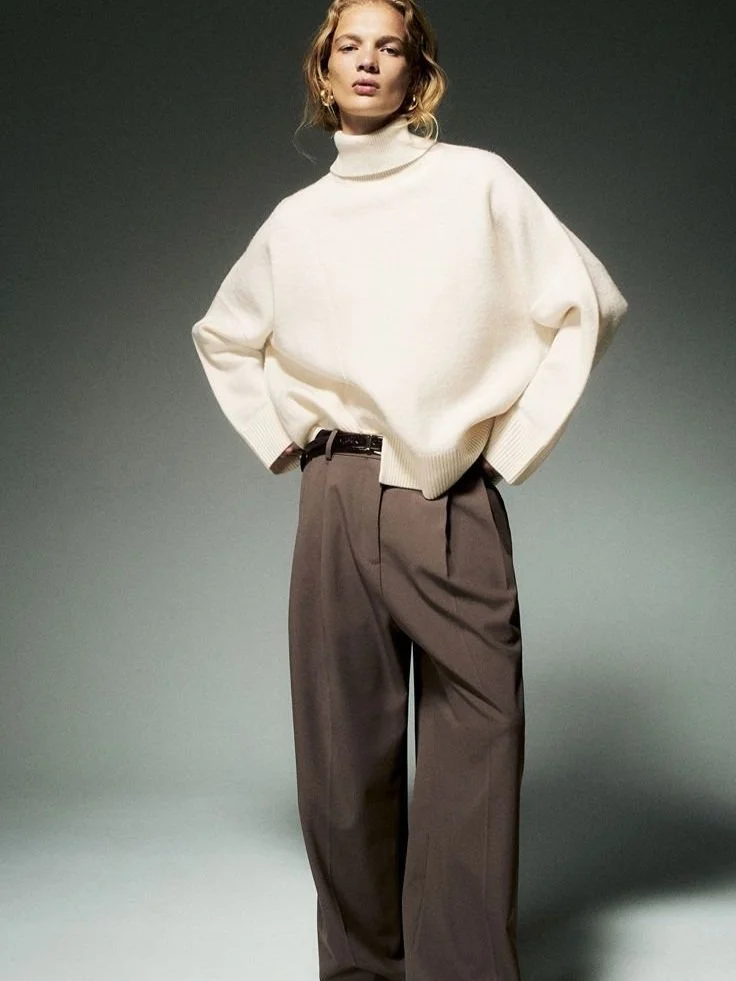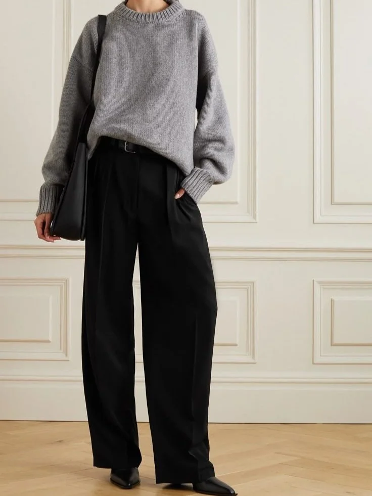 A cream or oatmeal-colored sweater paired with sleek, dark pants creates a contrast that’s undeniably chic. The boots? Look for something practical but fashion-forward—think mid-calf with a chunky tread.