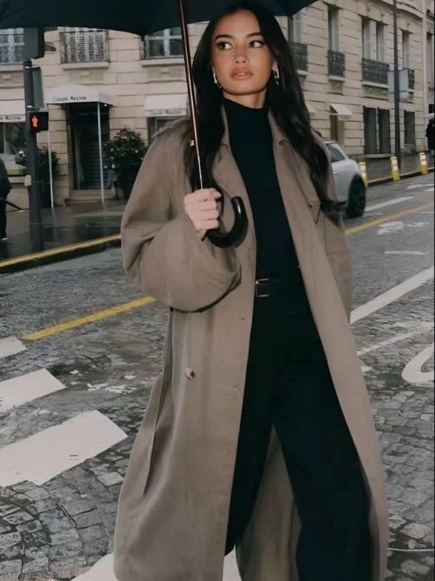 The trench is a winter travel hero. Opt for one in water-resistant fabric to handle unpredictable weather. High-waisted jeans and a tucked-in turtleneck create a streamlined silhouette that’s easy to layer.