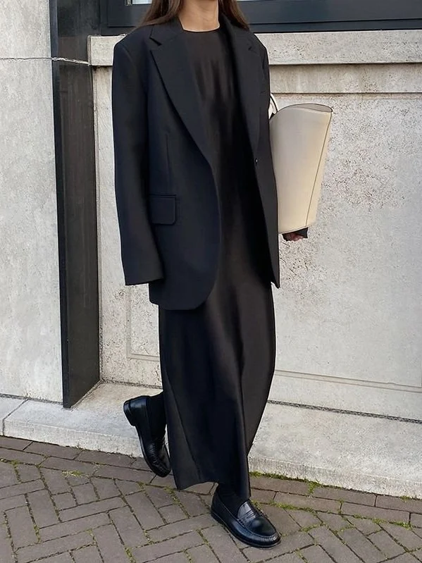 Picture this: a structured blazer layered over a cozy knit set—equal parts sharp and snug. The blazer isn’t just for style points; it doubles as armor against fluctuating cabin temperatures and an instant upgrade to your casualwear. Look for one with a slightly oversized silhouette in a neutral color like charcoal gray, camel, or navy. Pair it with relaxed knit trousers and a lightweight sweater in the same tonal family.